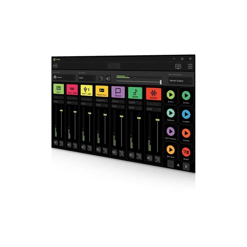 L’uso del software Matrix, disponibile gratuitamente, è del tutto opzionale, ma è tuttavia estremamente potente. Aggiungi fino a 6 ingressi virtuali (come Discord o Spotify) e 4 ingressi hardware e indirizzali tutti al tuo live streaming. Aggiungi effetti vocali, modifica il tuo mix e crea o attiva dei sample con 24 pad virtuali. Puoi anche utilizzare Matrix con dispositivi diversi da MainStream. Non s’ingelosirà di certo.
